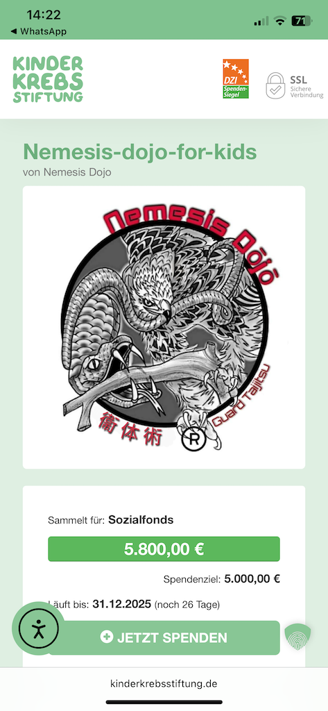 650€ für die Spendenaktion "Nemesis-Dojo-for-Kids" und die deutsche Krebskinderstiftung :)